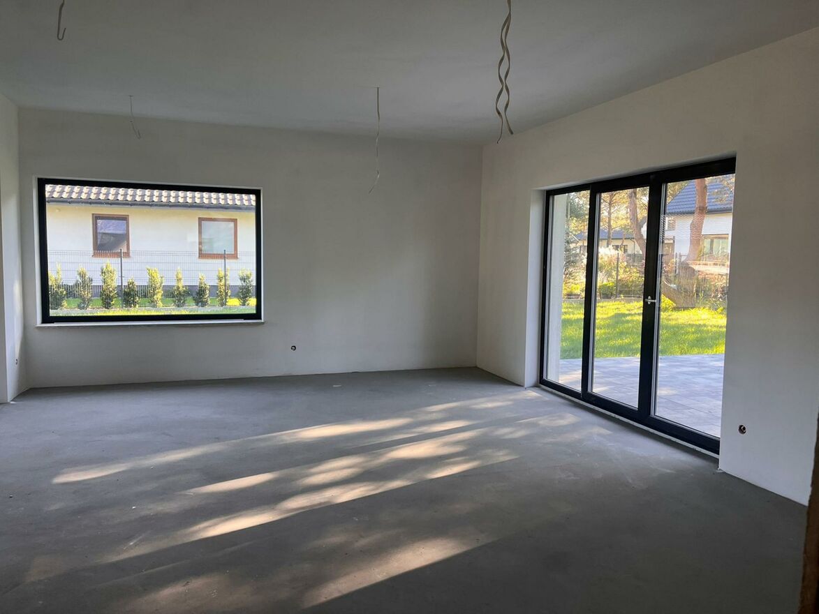 6 pokoi - w tym przestronny salon z jadalnią i wyjściem na taras, otwarta kuchnia, 4 sypialnie (w tym duża główna), dodatkowy pokój/gabinet,