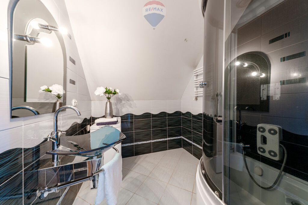 Zbudowany w technologii tradycyjnej (beton komórkowy) i w całości