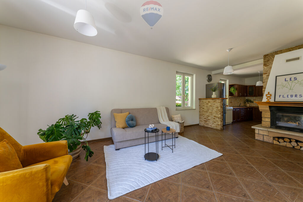 - salon (36 m²) z jadalnią, kominkiem, wyjściem na taras, ogród,